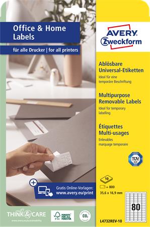 Etikett,univerzális, eltávolítható, 35,6x16,9 mm, AVERY ZWECKFORM, 800 etikett/csomag